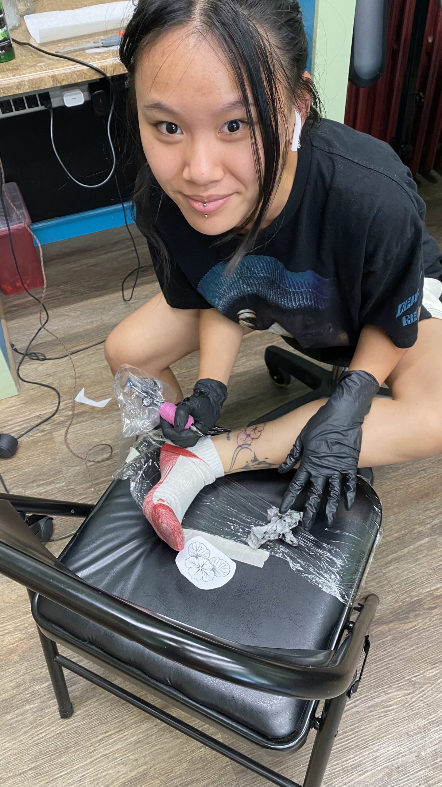 Once our students hit their practical hours and procedures, they are allowed to work on anyone who is at least 18 years old and with a valid id. While in school, students often tattoo themselves, family and friends, other students and staff, but we encourage students to start building their client base while in school.